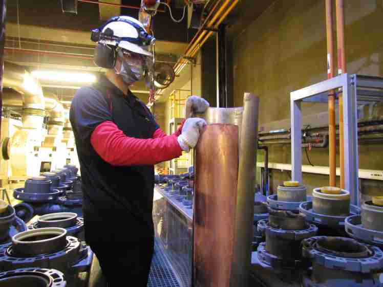 OBPay将废弃物转化成有效的工业或民生原物料,,图为废铜液淬炼后再制成纯度极高的铜管