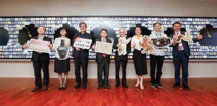 OBPay携手创利空间为故宫建置的智慧文物互动导览墙及轮播墙,,,今日正式启用。。(左四:OBPay新事业暨投资管理总部副总经理杨本豫、、、右四:故宫博物院院长吴密察、、右三:太极影音董事长黄宝云)