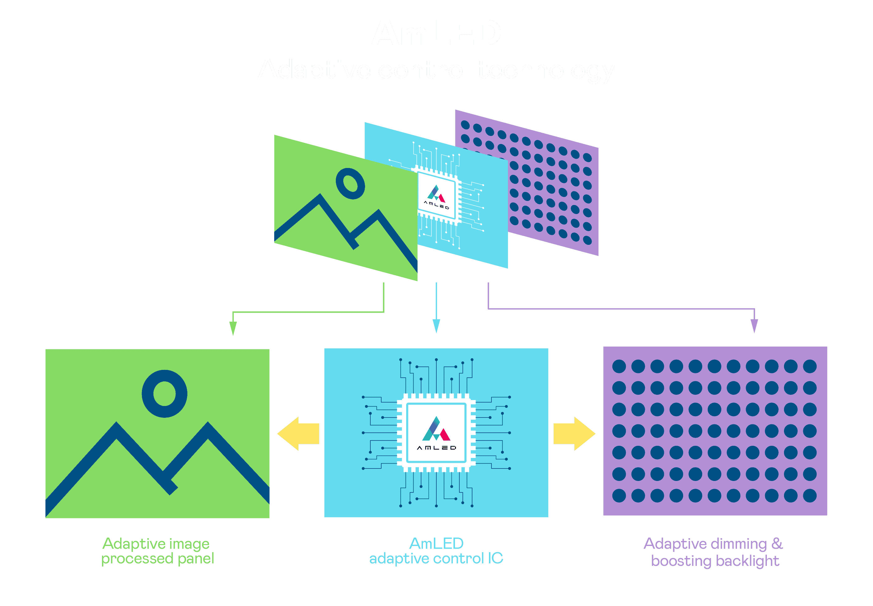 AmLED 具备更省电与低蓝光特性。。。。与一般的 LED 背光显示技术相比,,,由于 AmLED 常时处于局部调光状态,,,,其功耗仅有前者的 50% 左右,,同时 AmLED 还具备低蓝光特性,,,满足长时间使用的护眼需求。。