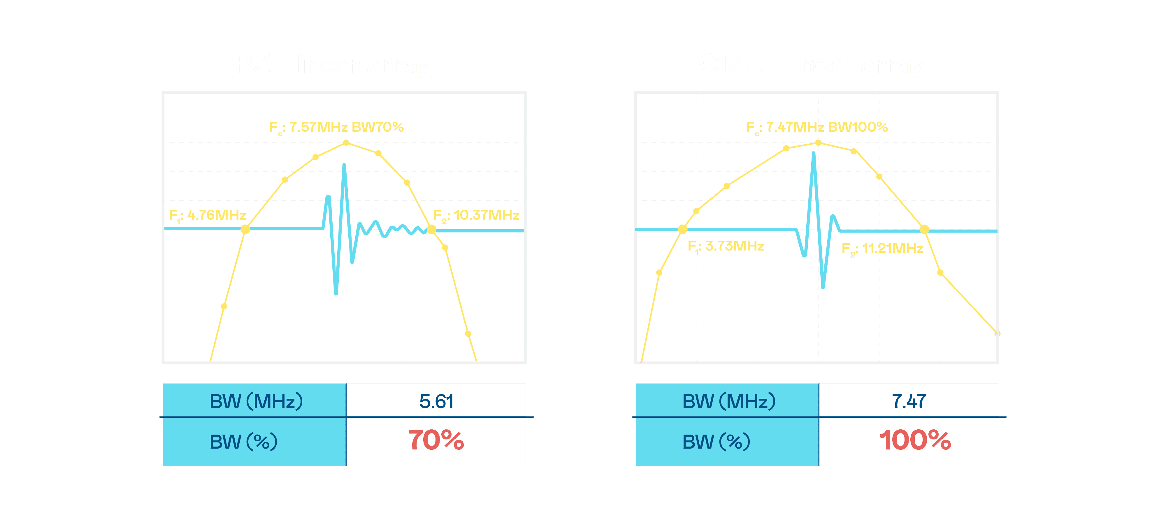 CMUT 技术是一种用电容式微机电元件来产生超音波讯号的技术。。。与传统 PZT 压电式技术相比,,,,CMUT 频宽增加 30%,,更宽频的超音波讯号让影像解析度大幅提升,,,,是实现高影像品质医疗超音波扫描、、、、促进精准医疗发展的关键技术。。。。